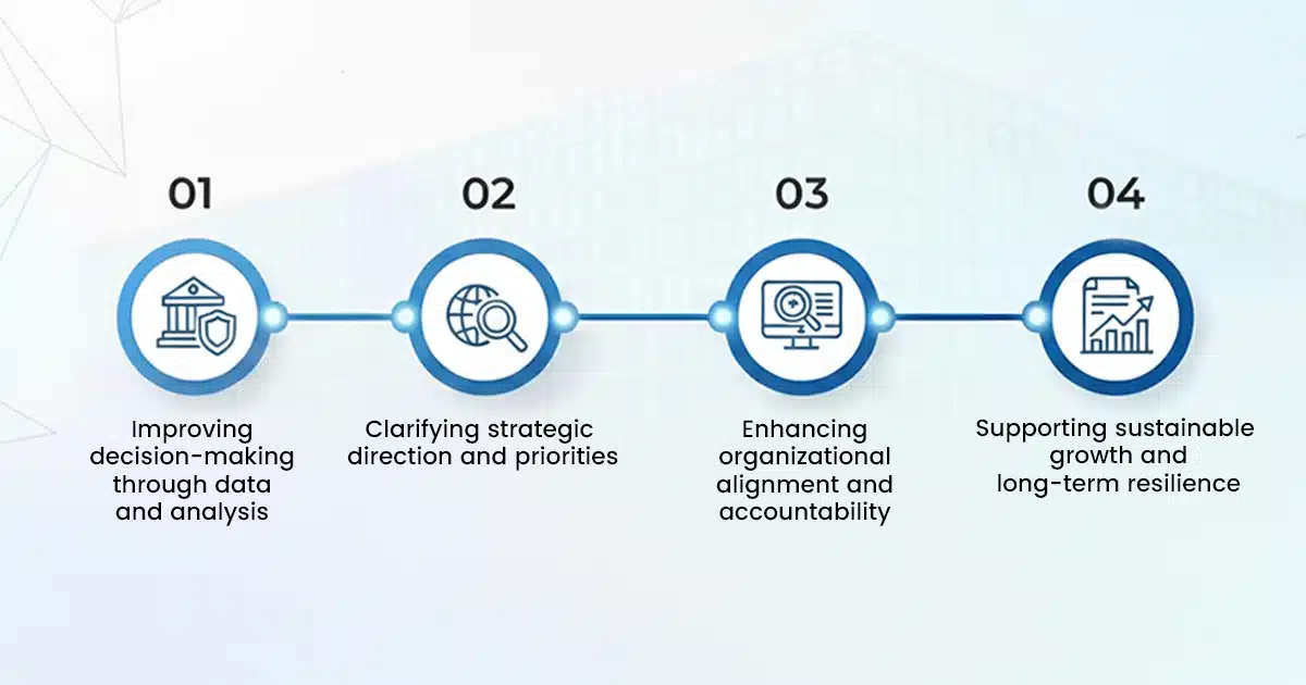 - Strategy Development: Defining vision, mission, and growth plans